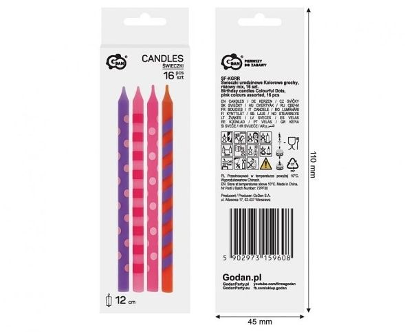 Dortové svíčky PUNTÍK 12cm 16ks růžový mix