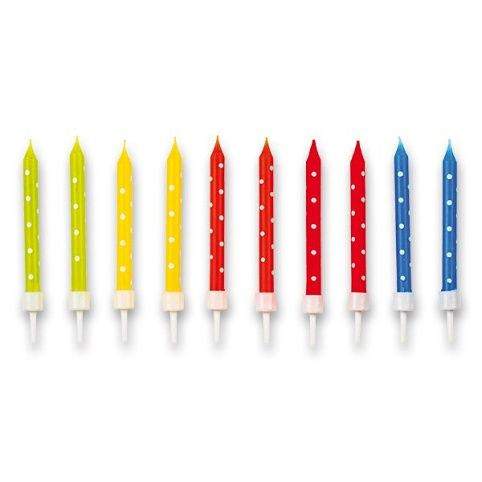 Dortové svíčky s puntíky. Mix barev. Balení 24 ks.