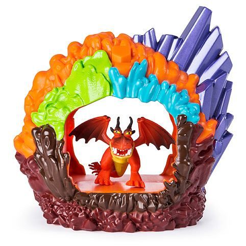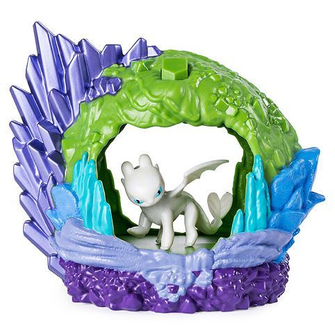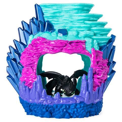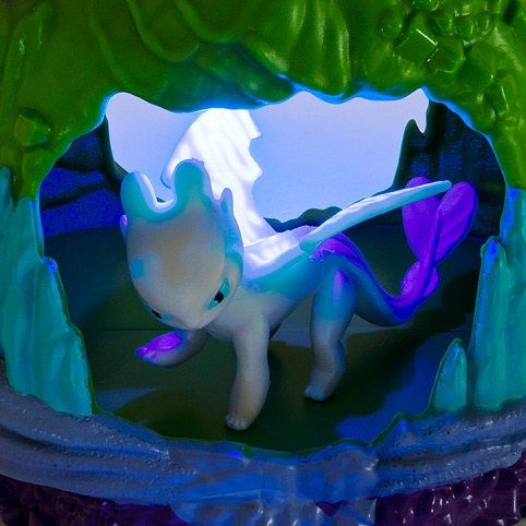 Vytvořte si dračí svět jako ve filmu Jak vycvičit draka 3 s ukrytou dračí jeskyní. Každý set obsahuje barevnou jeskyni a jednu figurku draka. Stiskněte tlačítko ve tvaru kamene a aktivujte UV světlo, pro objevení biolumiscentních ornamentů.