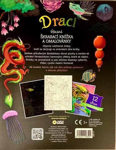 Objevte nádherné DRAKY - kteří se skrývají na stránkách této knihy. Setřete přiloženým škrábátkem černé plochy a nechte se uchvátit fantastickými barevnými efekty, které se objeví. Kresby na protistraně si pak můžete vybarvit podle předlohy, nebo i podle vlastní fantazie! Až budete hotovi, tak svá díla můžete vytrhnout a věnovat přátelům.
