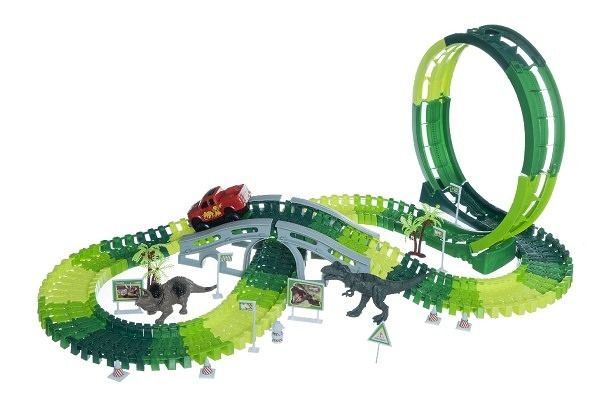 Autodráha Dino je vyrobena z kvalitního plastu. Sada obsahuje 172ks včetně auta, které je na baterie 2xAA (nejsou součástí balení). Dráha podporuje u dětí kreativitu, motoriku a dětskou fantazii. Délka dráhy může být až 305 cm.