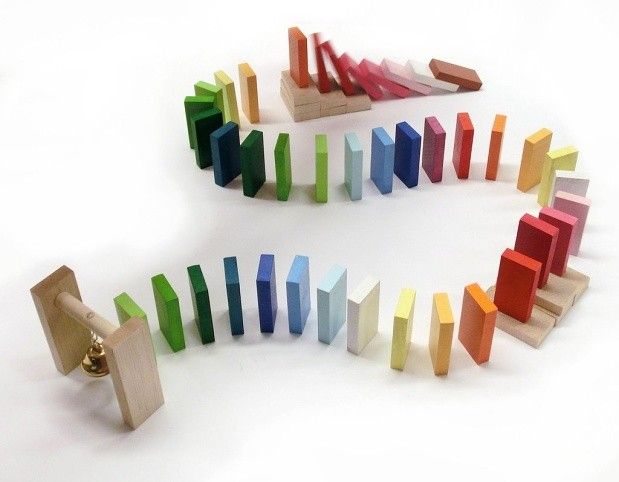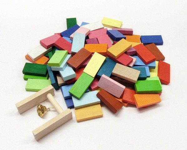 Sada obsahuje 95 pestrobarevných kamenů o rozměrech 40x20x7mm. Přidána také "branka" se zvonečkem, kterou můžete zakombinovat při stavění dráhy.