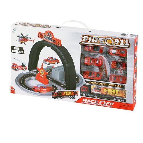 Tento skvělý hasičský set obsahuje dráhu, kterou můžeš různě kombinovat, 6 hasičských autíček a 1 kamión. Autíčka jezdí na volný chod a jsou velká cca 7 cm, kamión je dlouhý 19 cm. Tak neváhej a pořiď si tuto senzační hasičskou dráhu!