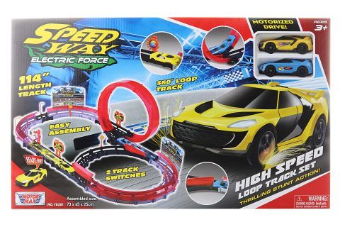 Plastová dráha s 2 autíčky. Autíčka jsou na baterie - jezdí v dráze sami. Napájení na 2 AAA baterie (nejsou součástí). Velikost dráhy cca 73 x 45 x 25 cm. Rozměry balení cca 50,5 x 30,5 x 6 cm. Věk 3+