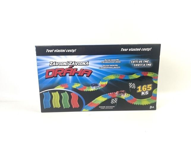 Dráha svítící ve tmě + autíčko s LED světlem 165 ks