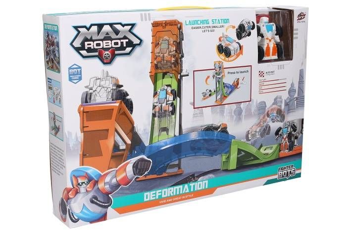 Vystřelovací dráha s autorobotem. Součástí dráha a jeden autorobot. Na startu se vystřelí auto, které se při dojetí do cíle změní v robota. Velikost robota 7 cm.