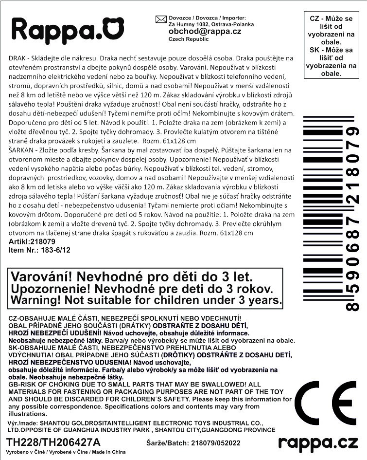Barevný plastový drak je ideálním doplňkem pro podzimní dovádění! Rozměry draka jsou 128 x 61 cm. Stačí si vybrat! Balení obsahuje draka, konstrukci a vodící šňůru s úchytem.