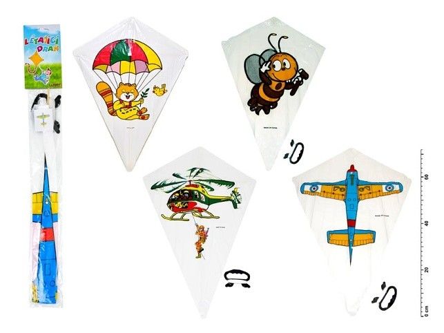 Blíží se drakiáda nebo si chcete užít prostě skvělé odpoledne? Vypadá to, že začíná to správné podzimní počasí, tak honem, jestli ještě nemáte toho svého draka. Parádní létající drak se bude na obloze určitě moc dobře vyjímat. Tak hurá na drakiádu! Pojďte se společně vyřádit při pouštění draků, třeba se těmito motivy. Možnosti motivů: letadlo vrtulník včelka Rozměr draka: 48 x 71 cm cena je uvedena za jeden kus UPOZORNĚNÍ: Používejte pod dozorem dospělé osoby, obal odstraňte z dosahu dětí. Nepoužívejte v blízkosti nadzemního el. vedení, v bouřce, za silného větru apod. Je-li součástí provázek nemotejte jej kolem krku nebo jiných částí těla. Hrozí nebezpečí udušení a vdechnutí malých částic.