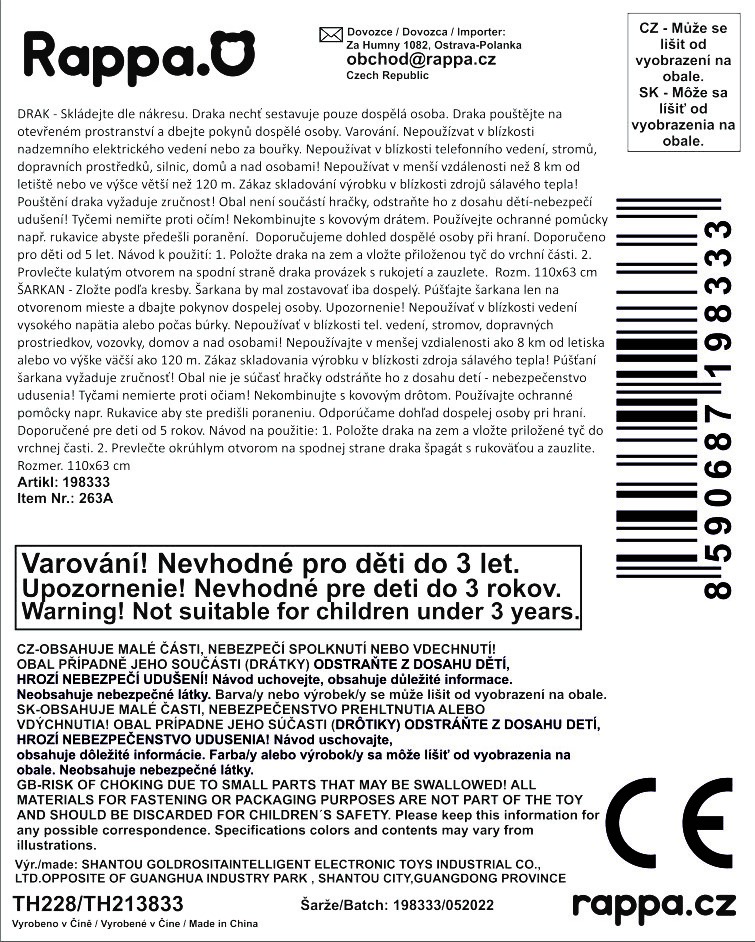 Barevný nylonový drak je ideálním doplňkem pro vaše podzimní dovádění! Rozměry draka jsou 110 x 63 cm. Balení obsahuje draka, konstrukci a vodící šňůru s úchytem.