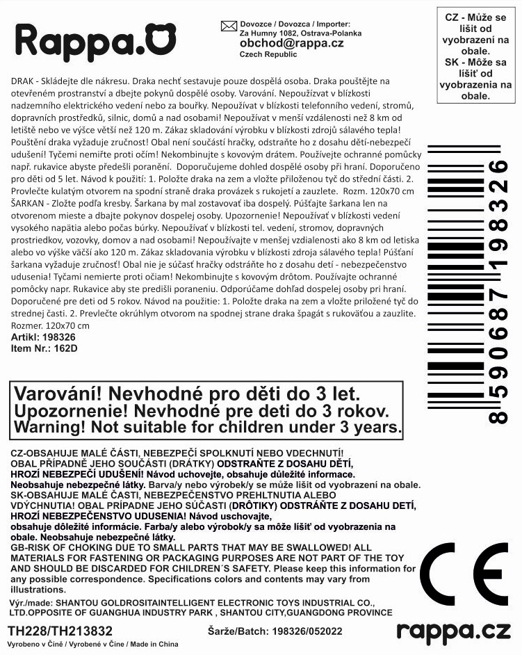 Nylonový barevný létající drak je senzačním doplňkem pro podzimní dovádění. Balení obsahuje draka, konstrukci a vodící šňůru s úchytem. Rozměry draka jsou 120 x 70 cm.