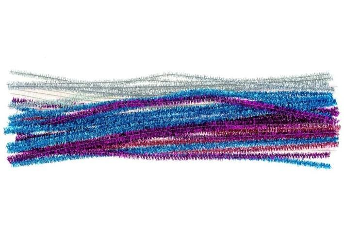 Drátky plyšové 6 mm x 30 cm metalický mix 40 ks