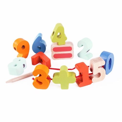 Skvělá vzdělávací hračka, která dětem umožní rozvíjet několik dovedností najednou. Dřevěné korále na navlékání na provázek obsahují čísla, znaménko sčítání a znaménko rovnosti, čímž si děti mohou procvičit základy matematiky a zároveň zlepšit obratnost, přesnost a koordinaci oko-ruka. Varovaní. Nevhodné pro děti mladší 18 měsíců. Dlouhá sňůra/dlouhý řetěz. Nebezpečí uškrcení.