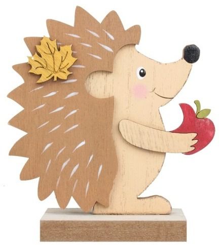 Dřevěná dekorace ježek s nakousnutým jablkem 13 cm (5133)