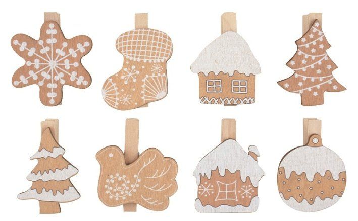 Dřevěné perníčky na kolíčku Kolíčky s motivem malovaných perníčků využijete k různým dekoračním a aranžérským účelům. Můžete si s nimi ozdobit věnce, přáníčka, obálky nebo třeba dárky. Osm kusů v sáčku.
