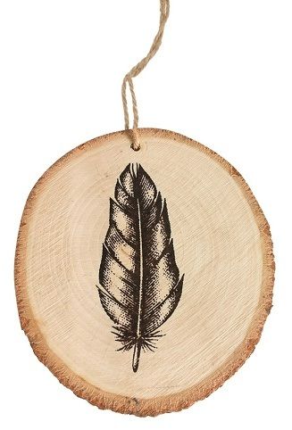 Dřevěná dekorace na zavěšení 10 cm, s pírkem