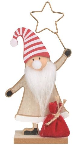 Dřevěný skřítek se svítícím nosem Roztomilý skřítek s hvězdičkou a svítícím LED nosem rozzáří i váš domov. Velmi pěkná a moderní dekorace, která se hodí do každého interiéru či pokojíčku. Baterie CR2032 (2 kusy) nejsou součástí balení. najdete je pod položkou 11102