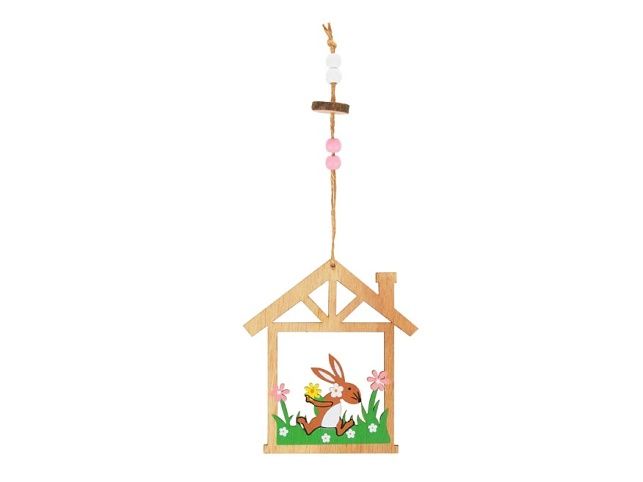 Velikonoční dekorace dřevěná - vyřezaný obrázek s motivem zajíčka - Vyzdobte si byt velikonočními dekoracemi a přivítejte tak svátky jara. Tuto dekoraci můžete použít na dekorování velikonočních věnců nebo větviček. Velikost: 10 cm Dekorace má provázek na zavěšení. Uvedená cena je za 1 ks.