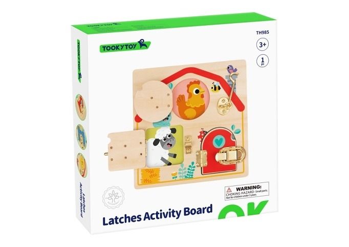 Activity board je manipulační a vzdělávací deska ze dřeva se třemi zámkovými mechanismy, které zaujmou každé malé dítě.