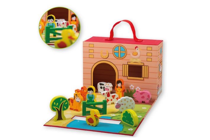 Dřevěná farma se zvířátky v praktickém kufříku. Kvalitní dřevěná hračka vyrobena z masivního bukového dřeva.