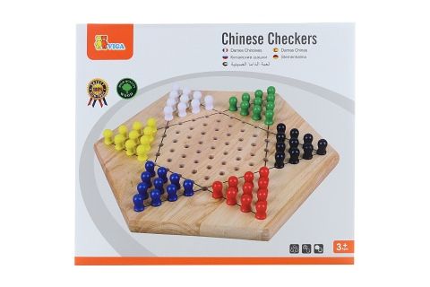Hra Čínská dáma. Čínská dáma je strategická desková hra určená pro 2 až 6 hráčů. Jedná se o variantu hry halma. Cílem hry je přemístit všechny své figurky do protilehlého cípu hvězdy. Každý hráč má svou sadu - barvu figurek. Rozměry balení 33,5x29x4,5 cm. Rozměr desky he hře 31x28 cm. Věk 3+