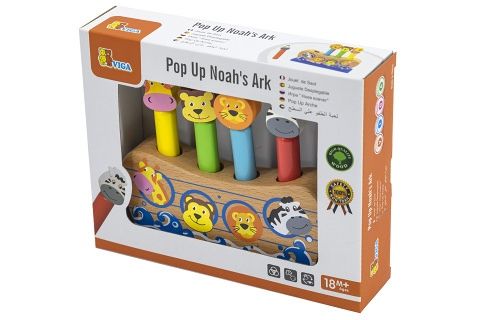 Dřevěná hra Noemova archa. Když dítě udeří do zvířátka, tak zvířátko vyskočí. Rozměry cca 17 x 14 x 4 cm. Rozměry balení cca 21 x 17 x 5,5 cm. Věk 18m+