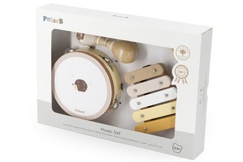 Sada dřevěných hudebních nástroj s motivem ježka. Balení obsahuje rumbakouli, xylofon s paličkou a bubínek. Rozměry balení cca 36x25x6 cm. Věk 12m+