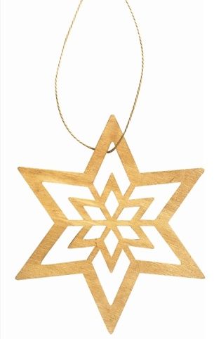 Dřevěná hvězda závěsná 10 cm, světle hnědá