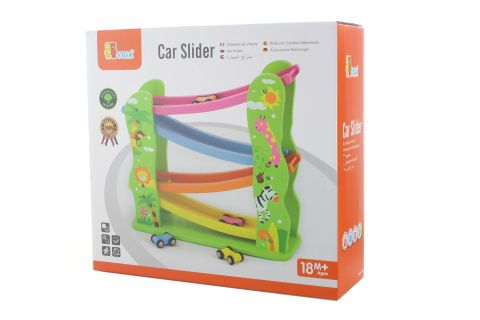 Dřevěná klouzačka s autíčky. Rozměry dráhy cca 31 x 29 x 10 cm. Rozměry balení cca 33 x 31 x 11 cm. Věk 18m+