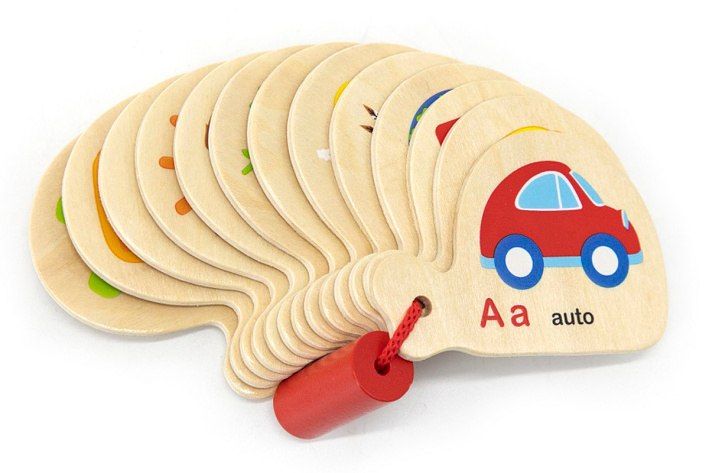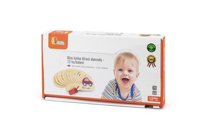 Dřevěná knížka pro nejmenší v českém jazyce. Rozměry cca 7 x 5 x 3,5 cm. Věk 12m+. 12ks v display boxu