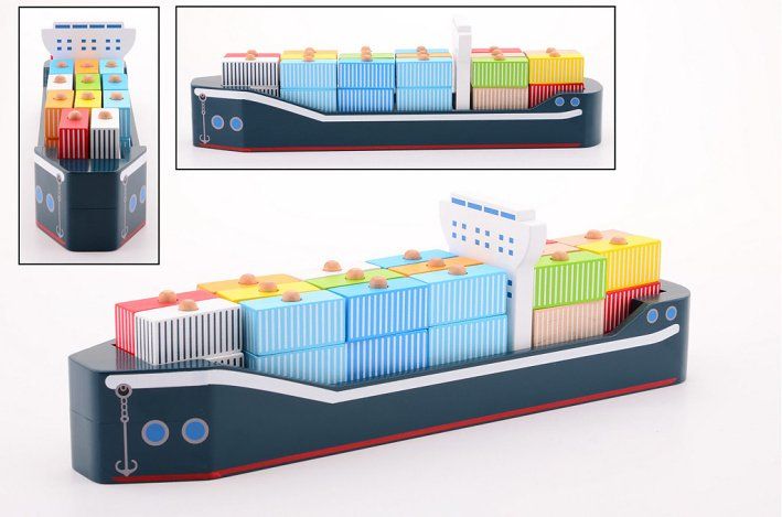 Dřevěná kontejnerová loď – lze rozebírat a dle vlastní fantazie
