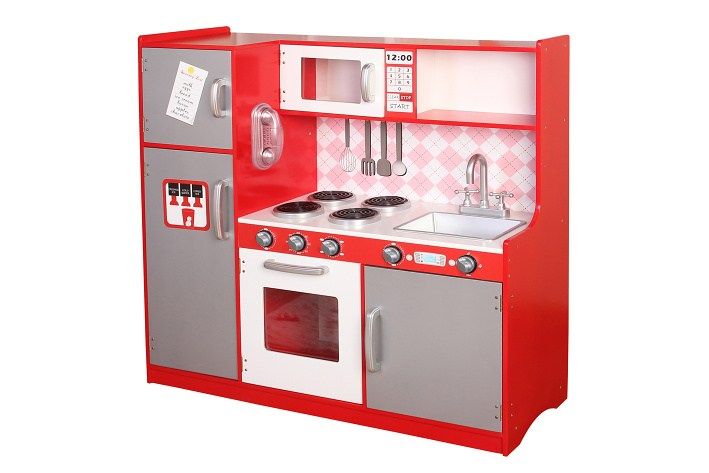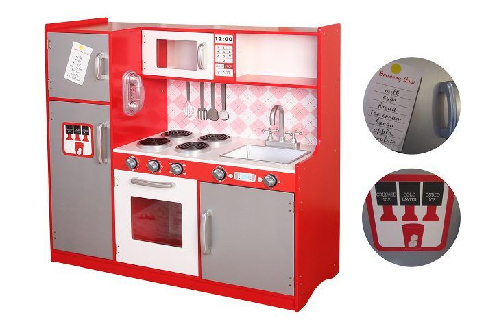 Kuchyňka s příslušenstvím. Vyrobena ze dřeva. Velikost ve složeném stavu 100 x 34 x 102 cm. Balení obsahuje plastové nádobí.