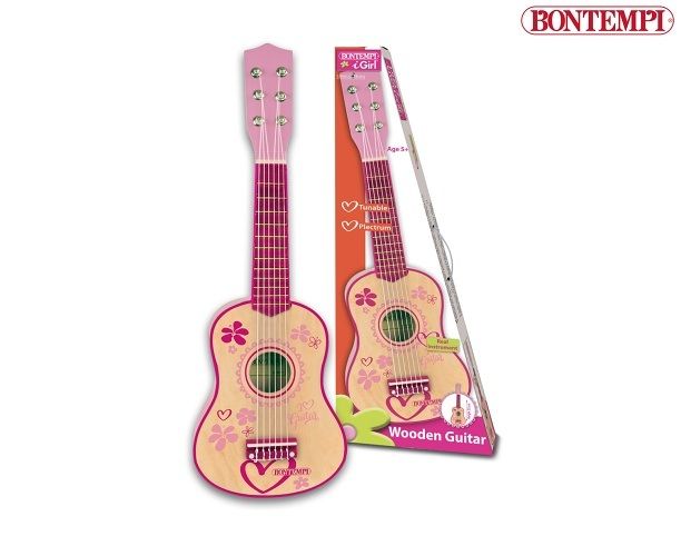 Dřevěná kytara se 6 strunami 55 x 18,1 x 6,5 cm