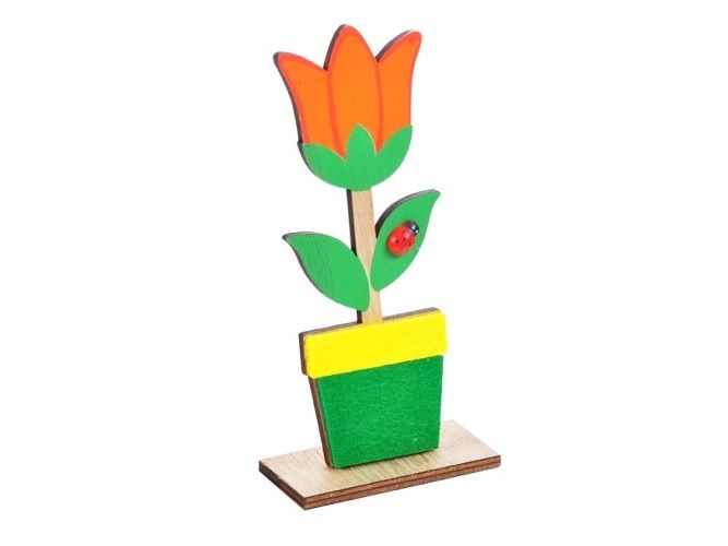 Velikonoční dekorace dřevěná - tulipán s beruškou - Vyzdobte si byt velikonočními dekoracemi a přivítejte tak svátky jara. Tato dekorace má podstavec, takže jí můžete umístit na komodu, jídelní stůl a doplnit ji velikonočními vajíčky nebo ji nechat jen tak samotnou na poličce. Velikost: 12 cm Uvedená cena je za 1 ks.