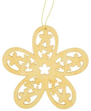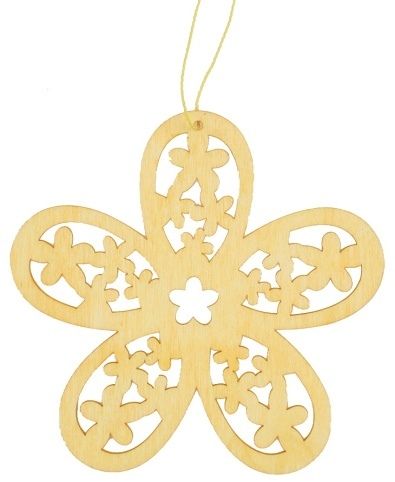 Dřevěná kytka na zavěšení 12 cm, žlutá