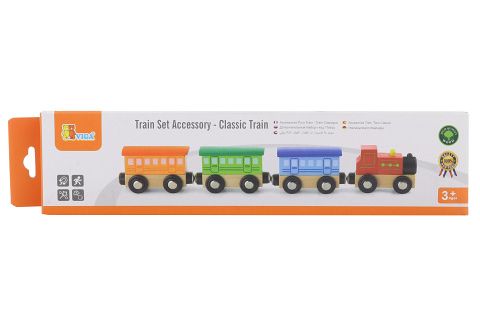Dřevěná mašinka se 3 vagóny. Rozměry balení cca 34 x 8 x 3,5 cm. Věk 3+