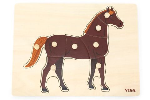 Dřevěná vkládačka s motivem koně. Rozměr dřevěné desky cca 22,5 x 30 cm. Rozměr balení 22,5 x 30 x 2,5 cm. Věk 18m+