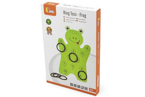 Dřevěná nástěnná hra - házení kroužků. Balení obsahuje dřevěnou žábu o velikosti cca 30 x 45 x 3 cm a 6 kroužku. Rozměry balení cca 30,5 x 45,5 x 4,5 cm. Věk 3+