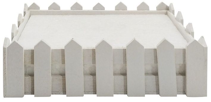 Dřevěná ohrádka s polystyrénovým blokem k zapíchnutí dekorací na špejli nebo drátku.