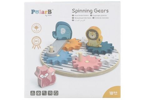 Dřevěná ozubená kolečka. Rozměry cca 18 x 18 x 7,2 cm. Rozměry balení cca 18,5 x 19 x 5,5 cm. Věk 18m+