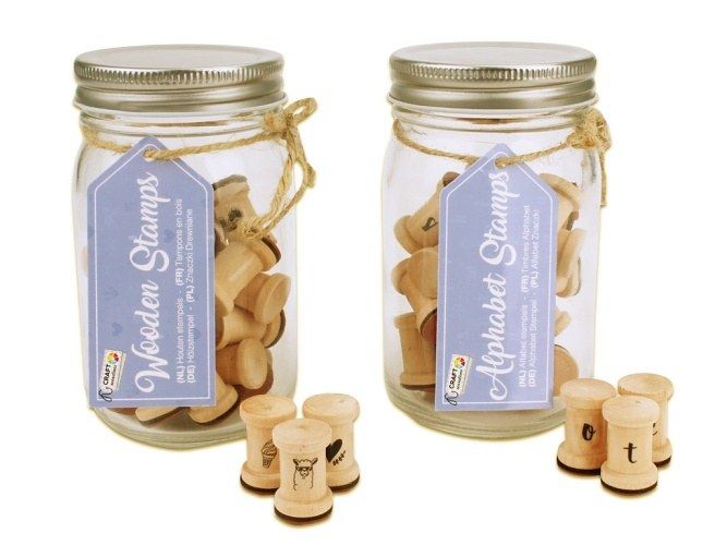 Dřevěná razítka ve skleněné sklenici – 2 druhy.
