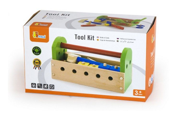 Sada dřevěného nářadí v přepravce. Probuď v sobě opraváře a sešroubuj dílky, které jsou potřeba. Šrouby a matice to vše najdeš v této originální dřevěné sadě! Perfektní pro rozvoj motoriky, vnímání tvarů a barev. Obsahuje: Šroubovák. Kladívko. Klíč. Šrouby. Matice a destičky pro šroubování. Specifikace: Rozměry přepravky cca 25×12×14 cm. Rozměry balení cca 26×13×15 cm. Vhodné pro děti od 3 let.