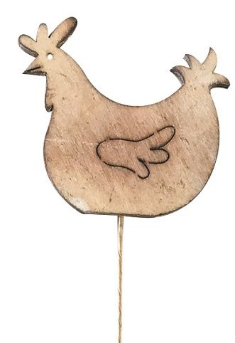 Dřevěná slepička 8 cm pálená bílá + drátek