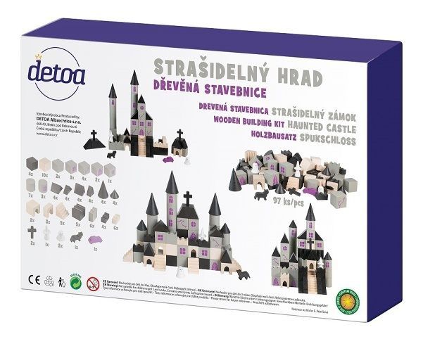 Postav si svůj vlastní strašidelný hrad! Temné věže, duchové, bílá paní, černá kočka – stavebnice rozvíjí fantazii a jemnou motoriku. 97 dílků z kvalitního dřeva v designu strašidelného hradu. Zábava pro malé i velké stavitele. Nevhodné pro děti do 3 let. Obsahuje malé části. Nebezpečí zalknutí. Obsah balení je 97 různě tvarovaných dřevěných dílků a základní velikost kostky je 25 mm.