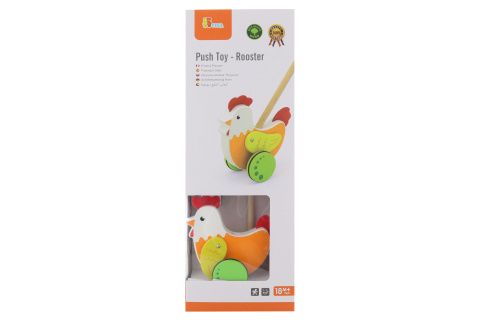 Dřevěná tahačka kohout. Rozměry kohouta cca 14 x 16 cm. Rozměry balení cca 18 x 50 x 8,5 cm. Věk 18m+