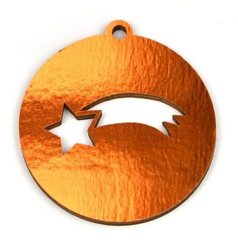 Dřevěná vánoční baňka, kometa, bronzové lamino