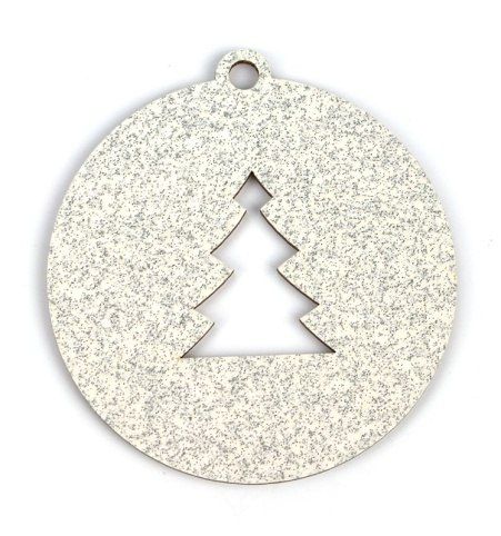 Dřevěná vánoční baňka, stromek, stříbrný glitr