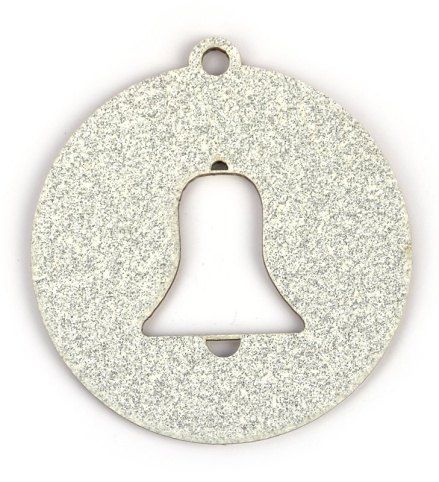Dřevěná vánoční baňka zvonek, stříbrný glitr