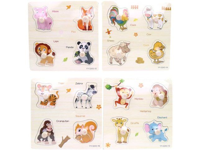 Dřevěná vkládačka, 4 druhy, 15 x 15 cm