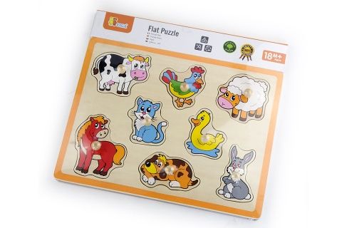 Dřevěná vkládačka se zvířátky. Rozměry dřevěné desky cca 30 x 22,5 cm. Rozměry balení cca 30 x 27 x 1 cm. Věk 18m+