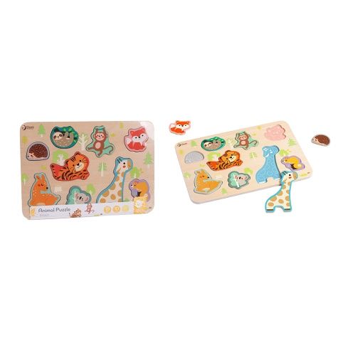 Objevuj svět zvířátek s krásnou dřevěnou vkládačkou! Barevně ilustrovaná deska a 9 veselých postaviček – od ježka a opoičky až po žirafu – pomáhá dětem rozvíjet jemnou motoriku, zrakové vnímání i logické myšlení. Každý dílek má pevné, zaoblené hrany a je uzpůsoben pro malé dětské ruce. Učení hrou začíná právě tady! Rozměr 30 x 21 cm Vhodné pro děti od 18 měsíců.